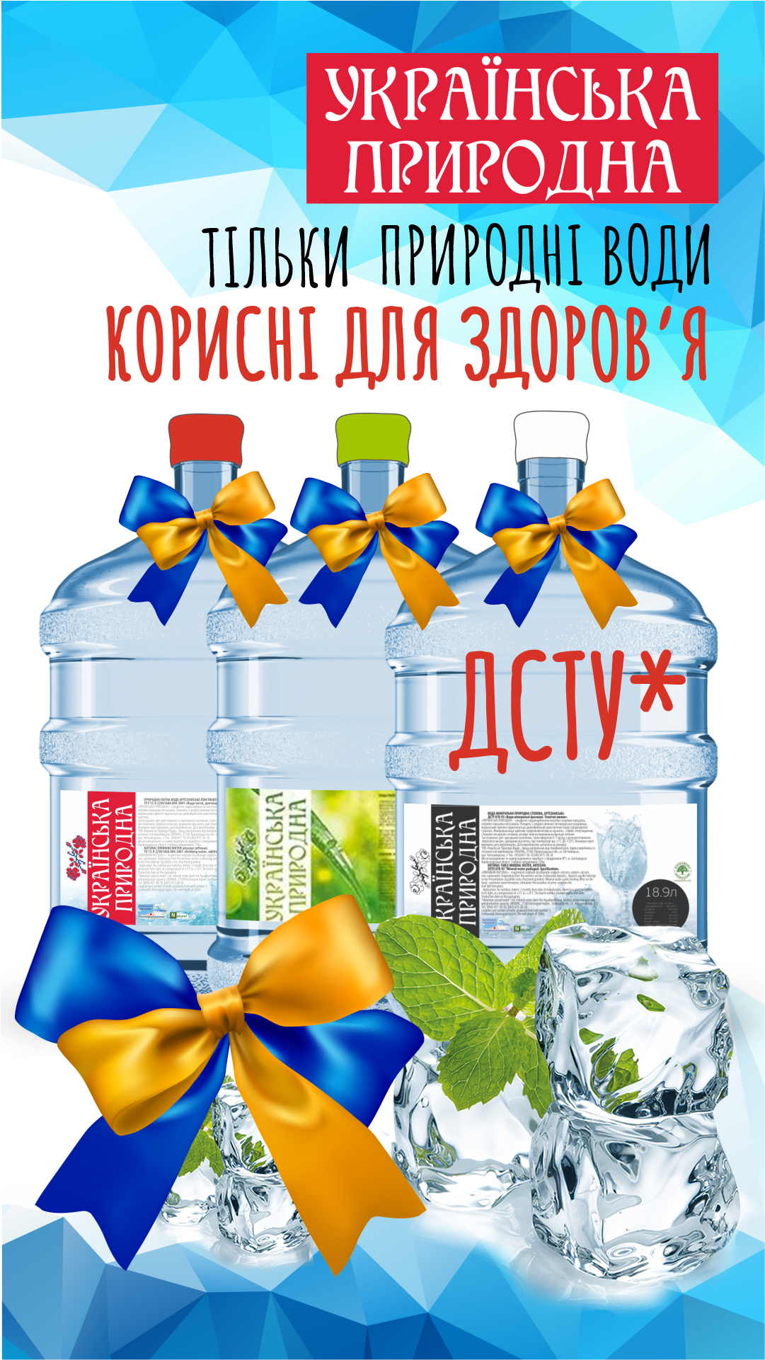 «Українська природна» – це натуральні, мінеральні артезіанські питні води вищої категорії, відомі з 1985 року. Ідеально збалансовані і мають майже всі, необхідні кожного дня людині, корисні елементи, речовини, сполуки та мінерали.