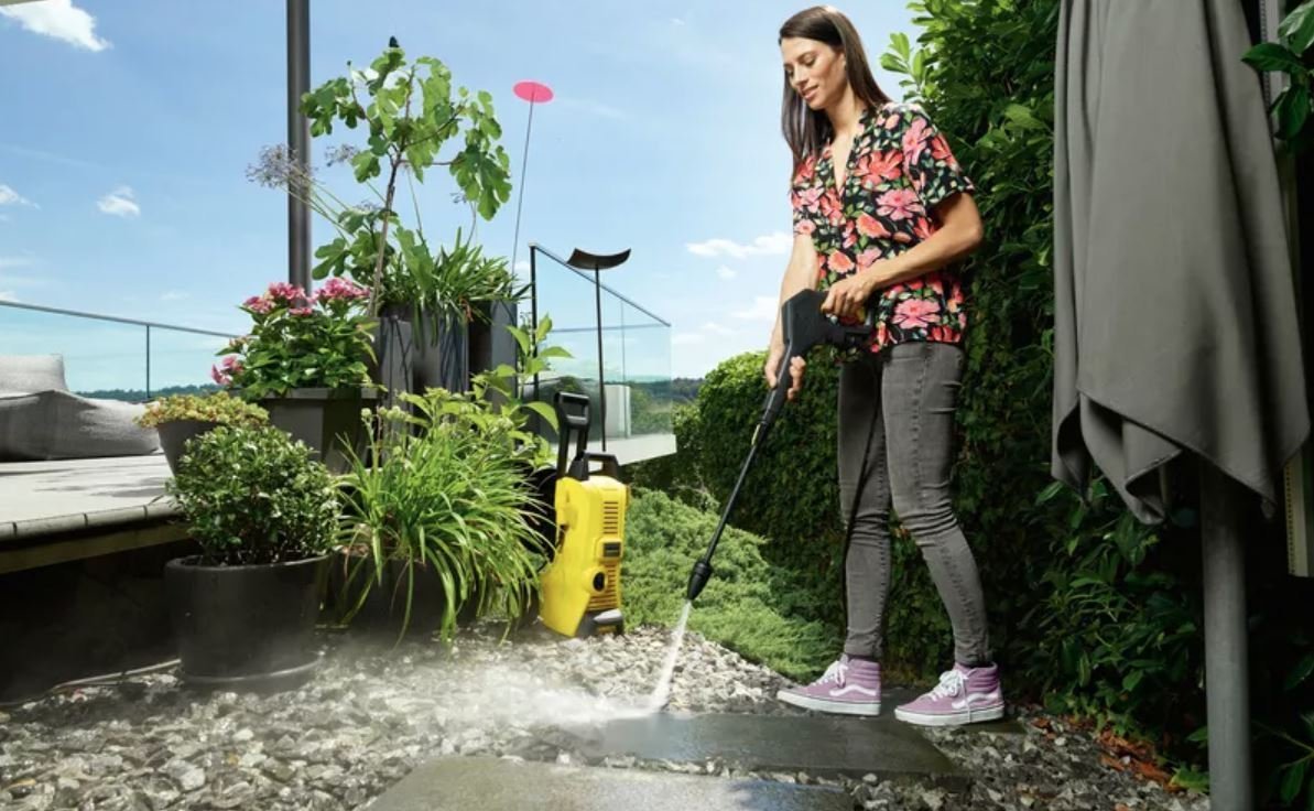 Також мийте садові меблі, скульптури, інвентар, інструменти. Все буде дбайливо та швидко оновлено без зайвих зусиль. Чистить будь-які матеріали, що дозволено мити водою, – камінь, цеглу, скло, пластик, сайдинг, килими й інші підлогові покриття тощо.