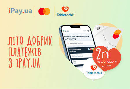 З 12 червня по 31 серпня iPay.ua спільно з міжнародною платіжною системою Mastercard проводять благодійну акцію «Літо добрих платежів». Зібрані кошти спрямують на допомогу дітям, які борються з раком – підопічним БФ «Таблеточки».