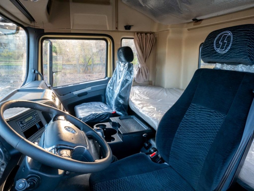 Комфортна кабіна виготовлена за німецькою ліцензією MAN. Утеплена, суцільнометалева, з двома спальними місцями. Підвіска кабіни — пневматична. Кабіна має 2 спальних місця (ширина нижньої полиці — 880 мм, верхньої — 750мм). Кабіна відкидається за допомогою електроприводу.