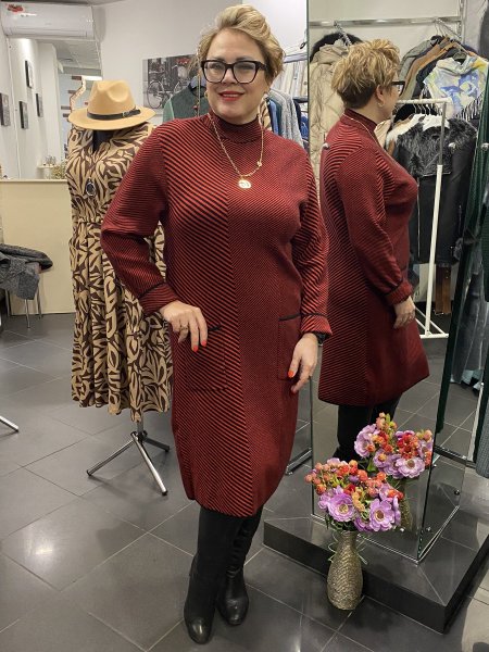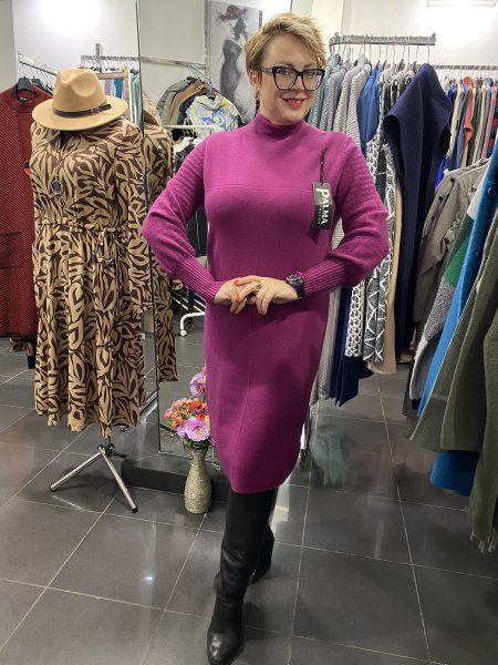 Підібрати сукню до новорічних і будь-яких інших свят можна в магазині “ДіловаЯ”. В наявності великий вибір трикотажних виробів: брюки, жилети, кардигани, джемпера. Весь одяг фабричної якості (виробник Україна). Підбір суконь за вашими параметрами - розміри 44-62.
