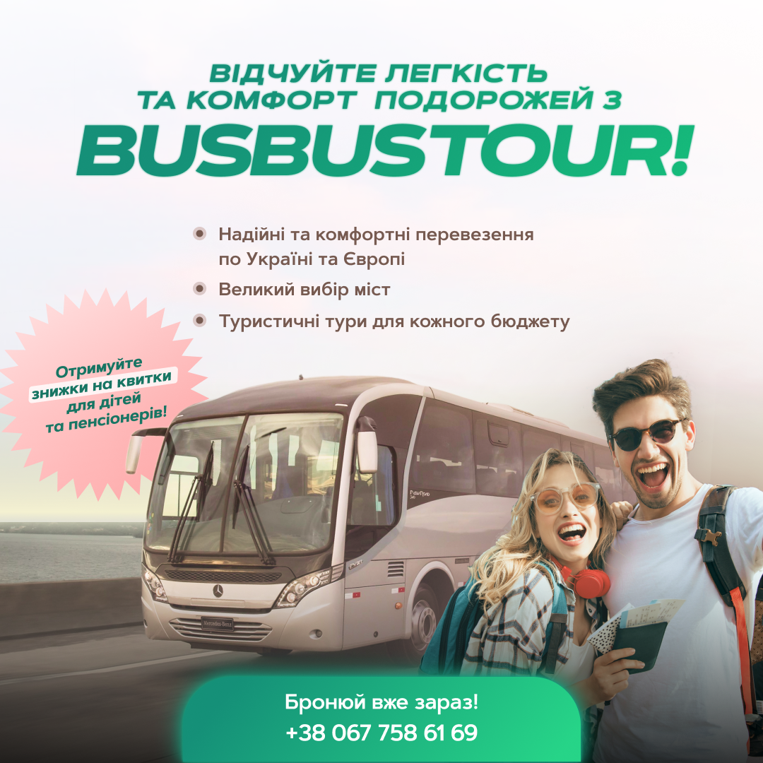 Якщо плануєте відпустку з сім’єю або друзями, саме для вас компанія BusBusTour пропонує захопливі тури з дослідження історії України. Вільногірські Мальдіви, Буддійські Черкаси, Тясминський каньйон, Шацькі озера на Волині та озеро Світязь, дивовижні гори та цілющі Солоні Озера на Закарпатті, Блакитне озеро у Кіровоградській області, контактний зоопарк у Ковалівці та Равликова ферма. Також можна запланувати подорож середньовічними містами Європи. Компанія BusBusTour пропонує надійні та комфортні перевезення по Україні та Європі, великий вибір міст, туристичні тури для кожного бюджету.