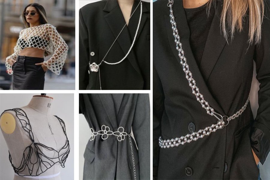 Мабуть, найцікавіший варіант застосування бісероплетіння. Оригінальні пояси, ланцюги для одягу додадуть навіть найпростішому образу родзинку.