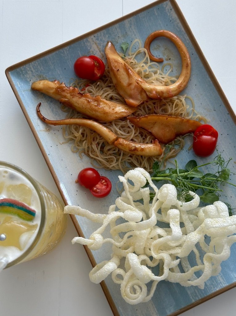 Ще одна унікальна пропозиція – щупальця каракатиці з фунчозою, які вразять вас вишуканим смаком та подачею. Ціна та ж сама – 199 гривень.