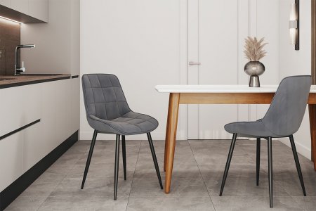 2. Обідній стілець - має високу зручну спинку, м’який наповнювач і текстильну оббивку. Чудово підходить для довгих трапез, дарує комфорт і затишок. Завдяки великому асортименту, можна підібрати абсолютно будь-який дизайн і стилізувати кухонну кімнату.
