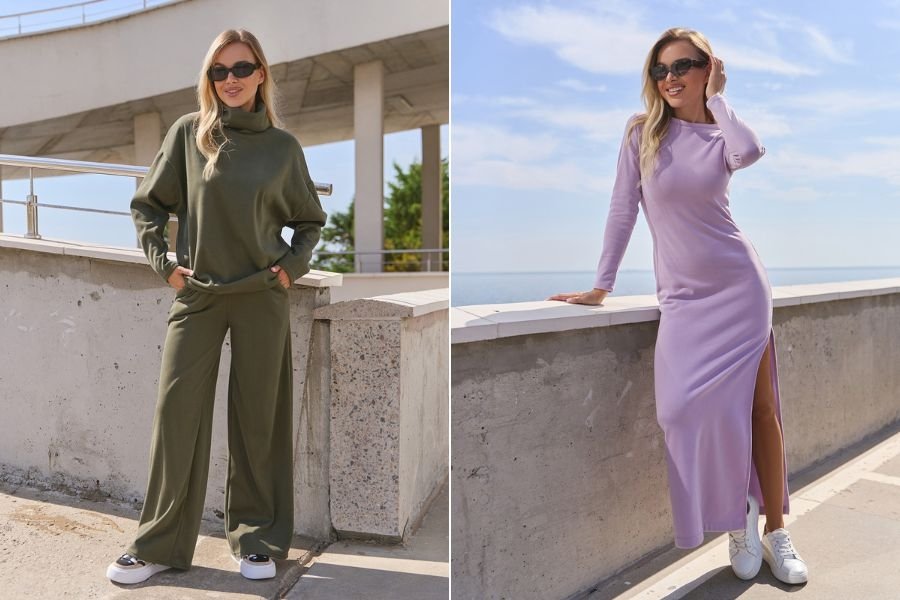 Він мультистильовий: у каталозі представлені діловий, повсякденний, спортивний, вечірній, домашній, відпочинковий одяг. У широчезній колірній палітрі і комфортній розмірній сітці до 3XL.