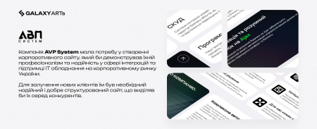 - Один з наших останніх проєктів — це розробка нового корпоративного сайту для «AVP System». Це був важливий крок для компанії, адже вони вже 20 років на ринку, а також хотіли оновити свій сайт та зробити його більш інтуїтивно зрозумілим для своїх клієнтів.