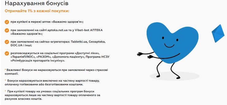 На жаль, бонуси нараховуються лише на покупки, здійснені за готівковий чи безготівковий розрахунок, і не поширюються на соціальні програми або замовлення через страхові компанії. Проте і без цього з бонусною програмою можна добре зекономити.