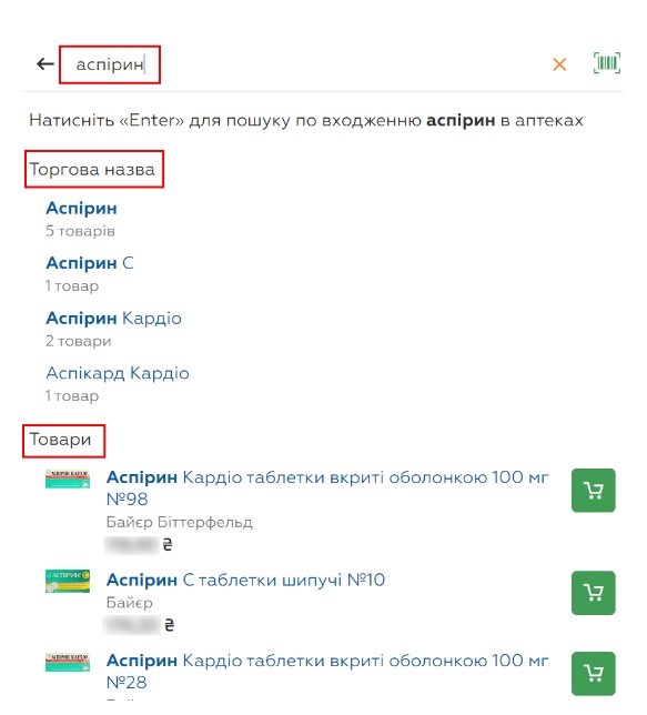 Система пошуку допомагає швидко знайти необхідні ліки за назвою, діючою речовиною або торговою назвою.