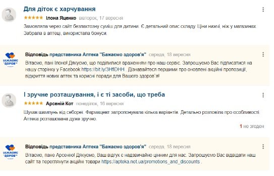 Мережа аптек «Бажаємо здоров'я» дотримується високих стандартів фармацевтичної практики, пропонуючи зручний сайт та безліч вигідних пропозицій для своїх клієнтів. Компанія робить все можливе, щоб споживачі були максимально задоволені обслуговуванням та асортиментом.