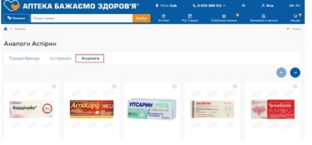 Сайт мережі аптек «Бажаємо здоров'я» має зручну функцію пошуку аналогів лікарських засобів. Це дозволяє користувачам швидко знайти препарати з тією ж діючою речовиною або схожою терапевтичною дією, що особливо корисно, якщо потрібного товару немає в наявності або є бажання порівняти ціни.