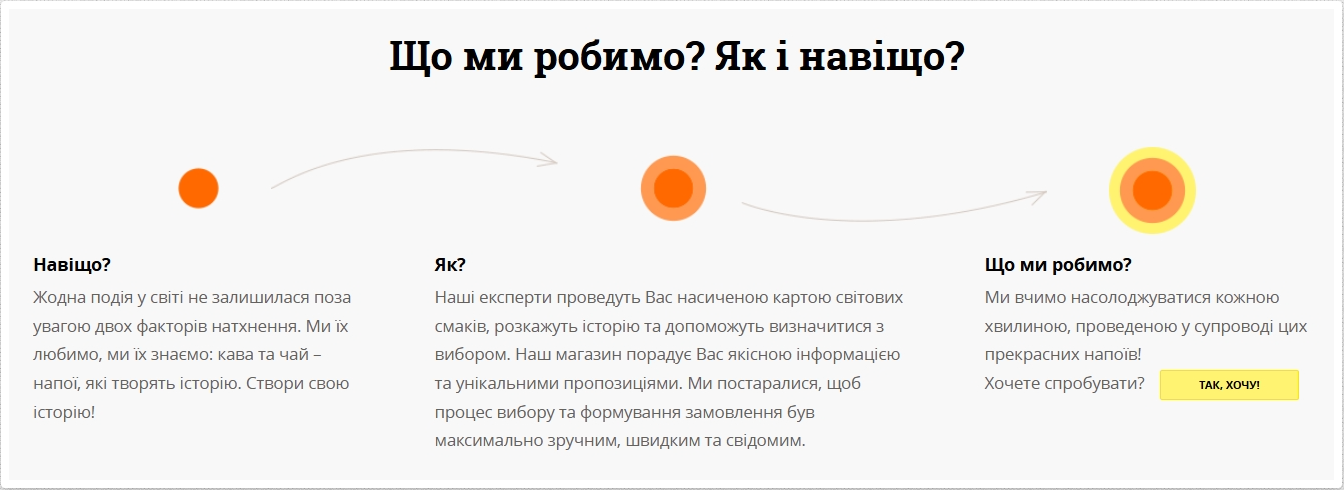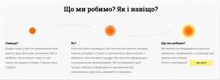 Для нас кава і чай, це не просто черговий спосіб продати товар або розвинути бізнес. Ні, ми любимо і досконально знаємо, що таке якісний чай і кава! Ми творимо історію просто у вас на кухні та вчимо повністю насолоджуватися всім процесом, включно з помелом, приготуванням і безпосередньо дегустацією. Потекла слинка? Чудово, ви на правильному шляху!