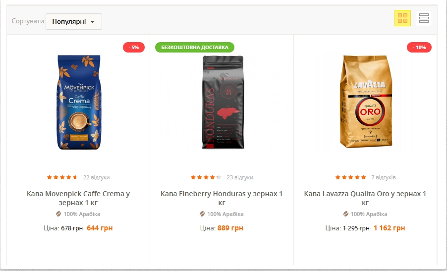 У нашому магазині пропонується більш ніж 50 виробників кавової продукції за відмінною ціною. Ви можете сміливо посмакувати італійськими Illy, Musetti, Kimbo, Lucaffe, Lavazza, і Julius Meinl, швейцарськими BlaserCafe, Movenpick і Cafe Badilatti, німецькими J. J. Darboven і Melitta, французьким Malongo і багатьма іншими не менш популярними марками.