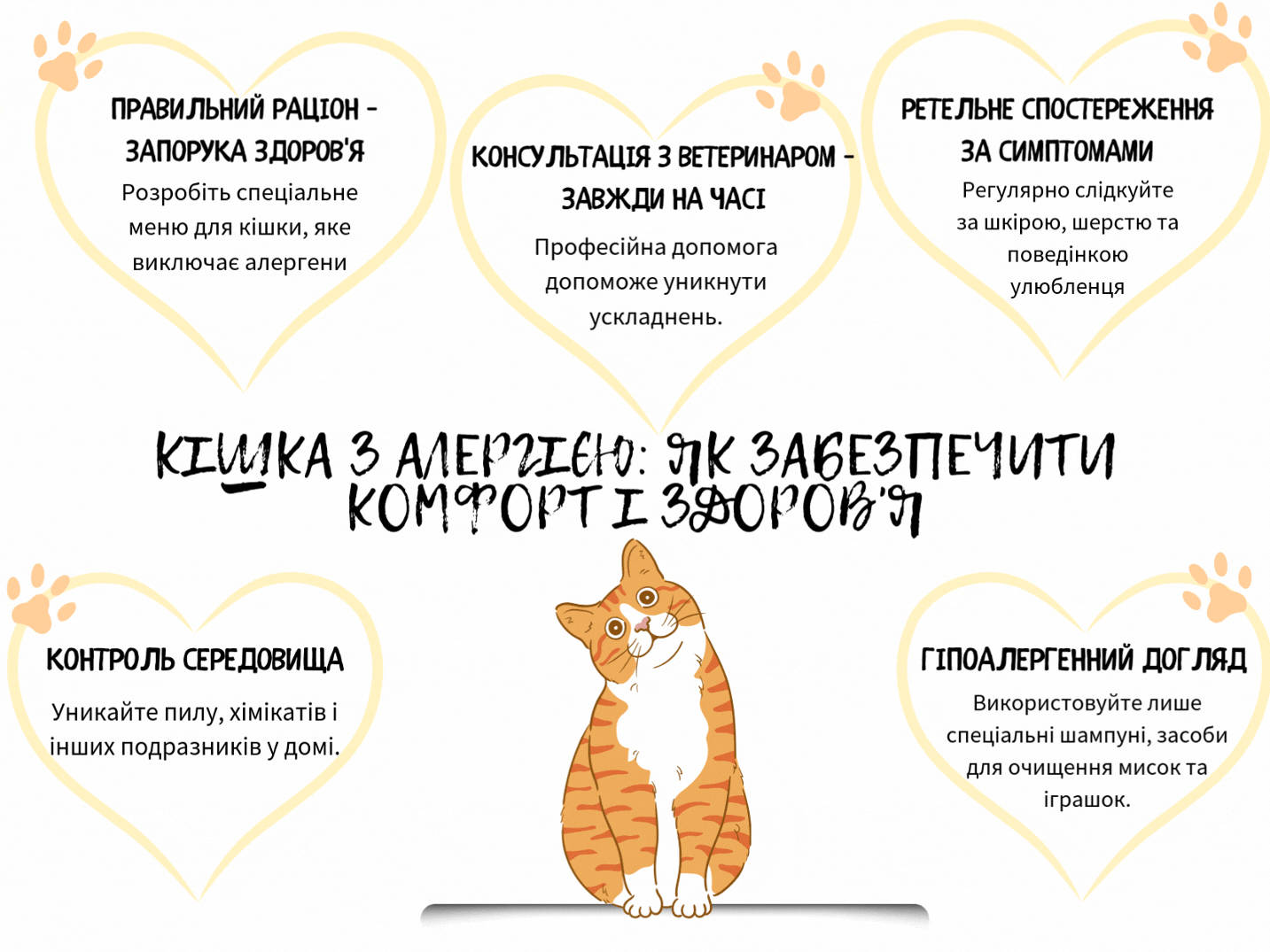 Збалансований корм із відповідними інгредієнтами допоможе уникнути алергічних реакцій і покращить самопочуття вашої кішки.