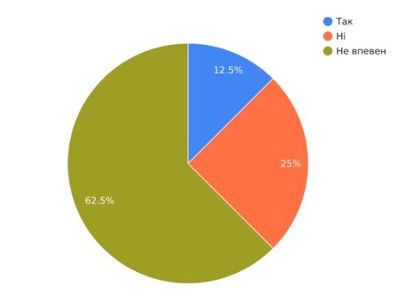 Результати показали, що 62,5% представників бізнесу недостатньо обізнані про криптовалюти. Незважаючи на це, ставлення до криптовалют залишається переважно позитивним: 61,61% опитаних налаштовані позитивно, а 38,39% займають нейтральну позицію. Потенційно кількість позитивно налаштованих до криптовалюти бізнес-суб’єктів (керівників) може сягнути понад 80%.