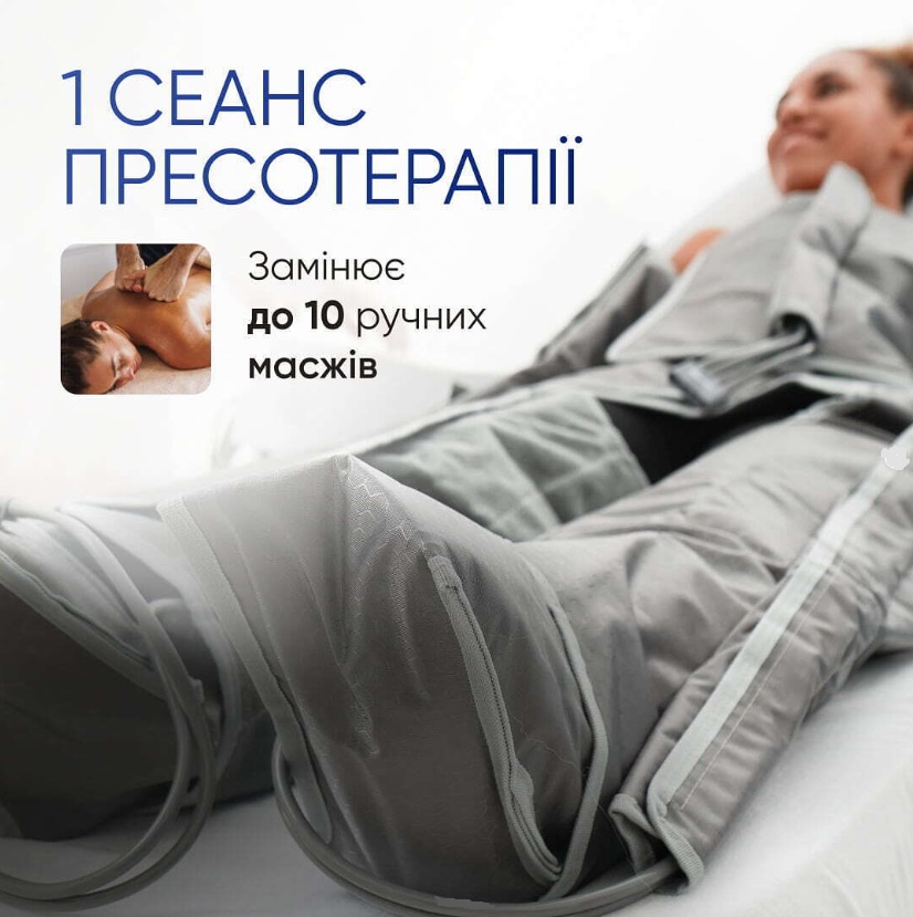 Пресотерапія — сучасна процедура, яка поєднує в собі лімфодренажний масаж і делікатну компресію на тіло за допомогою спеціального апарата. Вона створена, аби стимулювати кровообіг, активізувати лімфатичну систему та позбавити організм від зайвої рідини, токсинів і набряків.