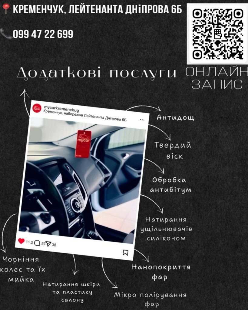 В MyCar Kremenchug ми перетворюємо звичайний догляд за авто на справжній ритуал турботи.