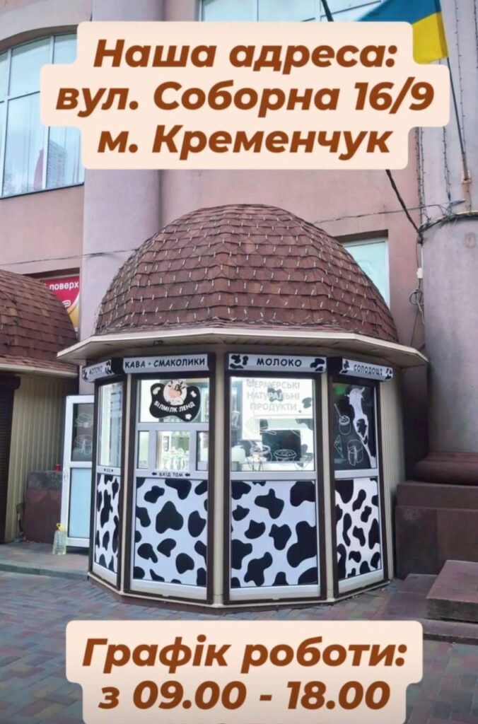 Запрошуємо до нашого фермерського магазинчику «Bilmilk_lend», який знаходиться за адресою: вул. Соборна 16/9 м. Кременчук (Будинок Торгівлі, зліва від входу).