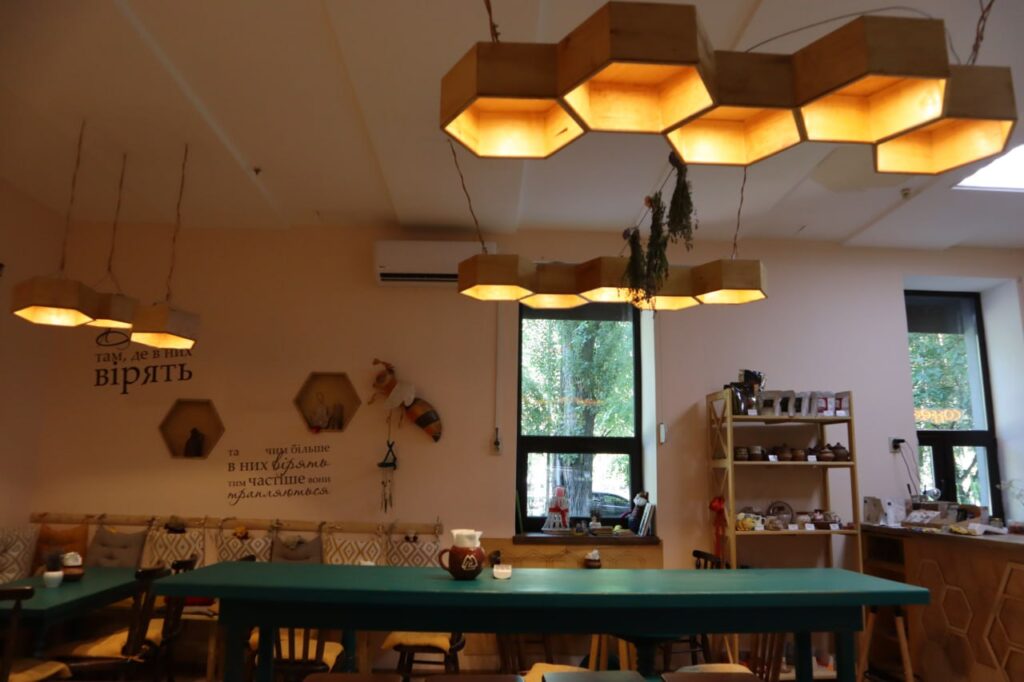 Тут ти можеш не тільки придбати якісну продукцію за приємними цінами, підтримавши нашого місцевого виробника, а й насолодитися фірмовими кавовими напоями, крафтовим українським чаєм або какао з медом та горіхами у затишній атмосфері медової кав’ярні.