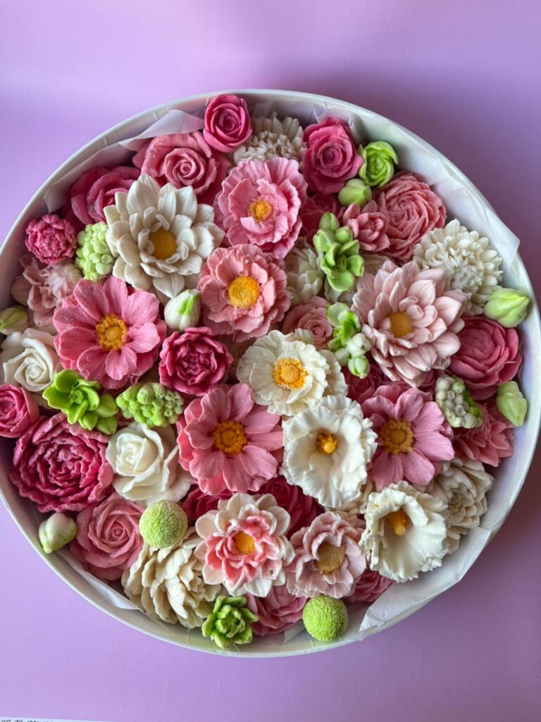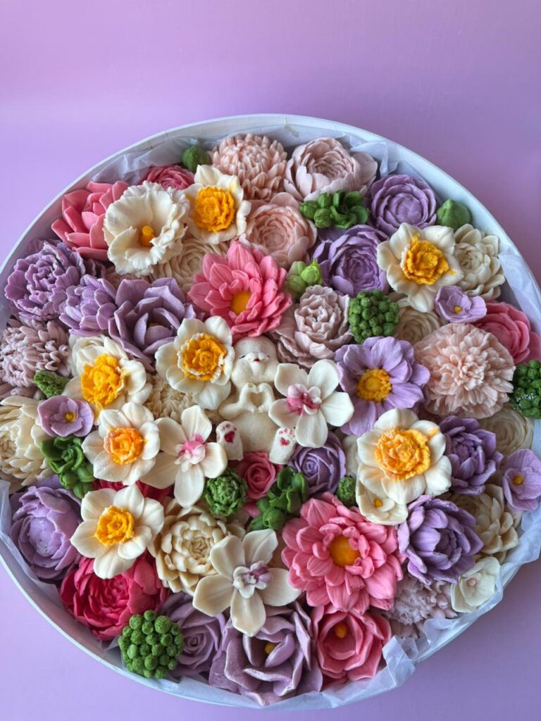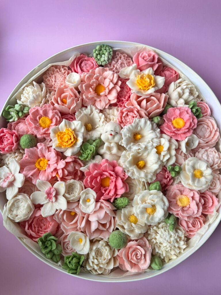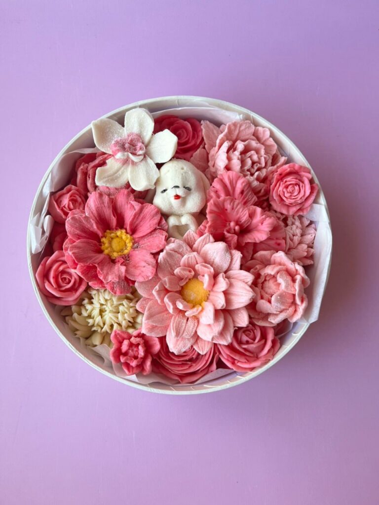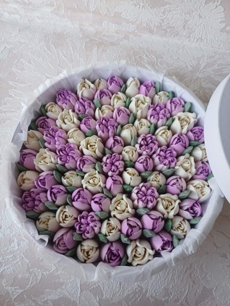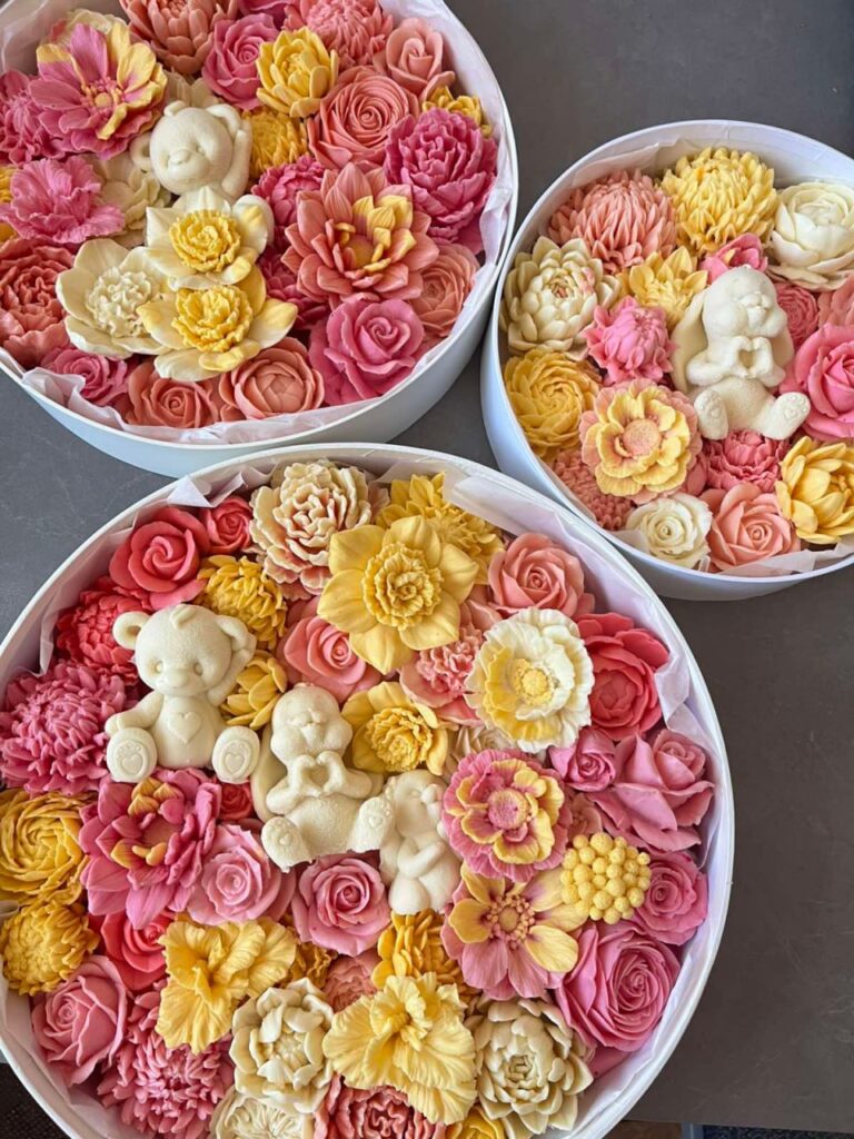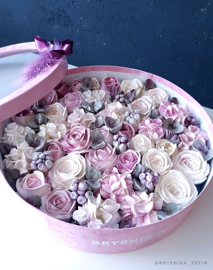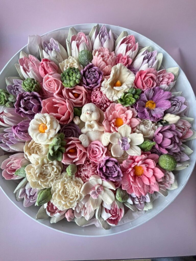 Тюльпани, півонії, гортензія, троянди, ранункулюс, мускарі, бузок і навіть ягоди малини — і все це з зефіру.