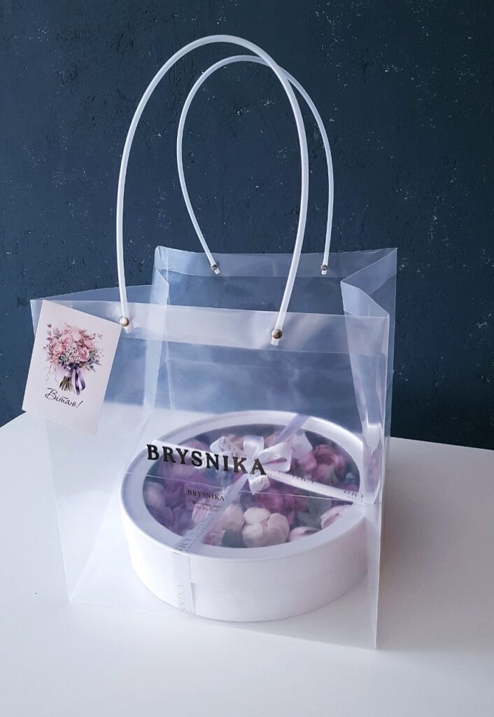 До кожного подарунку ми додаємо вітальну листівку (яку можемо підписати від вашого імені) та зручні переноски для красивого і презентабельного дарування вашого зефірного подарунку.
