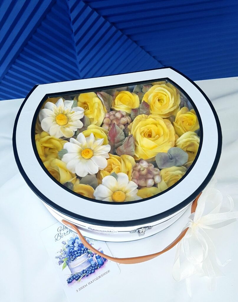 Подарункові бокси та букети доступні до замовлення в різних розмірах, від невеличких презентів (для корпоративних замовлень) до букетів-гігантів на особливу подію.