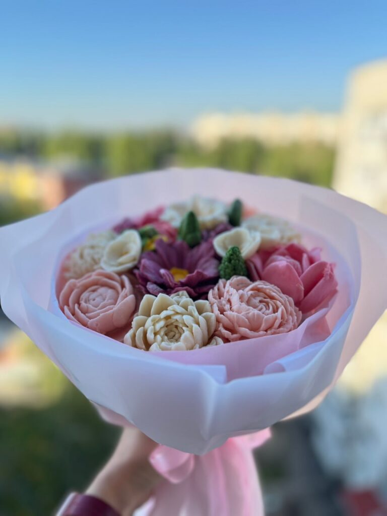 Тепер мої десерти — це не просто ласощі, це квіти з натурального пюре і домашнього яблучного соку, які дарують емоції. Мої букети приносять посмішки та гарний настрій!
