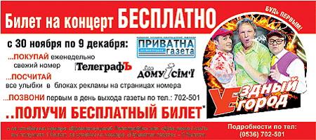 Удачно посчитав улыбки в предыдущих номерах «Телеграфа», «Приватной газеты» и «Для дома и семьи», пойдут бесплатно на концерт «Уездного города»: