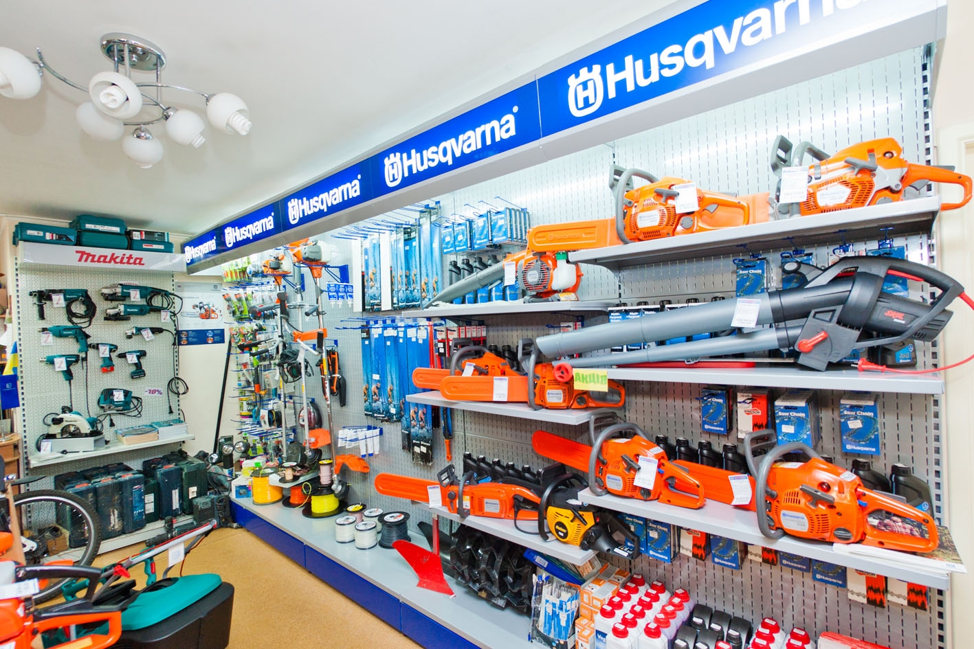 В магазине представлен широкий ассортимент электро-, пневмо, бензоинструментов ТМ «Metabo», «BOSH», «Husqvarna», «Makita» и др. Шлифмашины, сверла, бензопилы, лобзики, продукция для лесного и садового хозяйства, станки, автомобильные наборы, силовая и сторительная техника и многое другое для профессионалов и домашних мастеров.