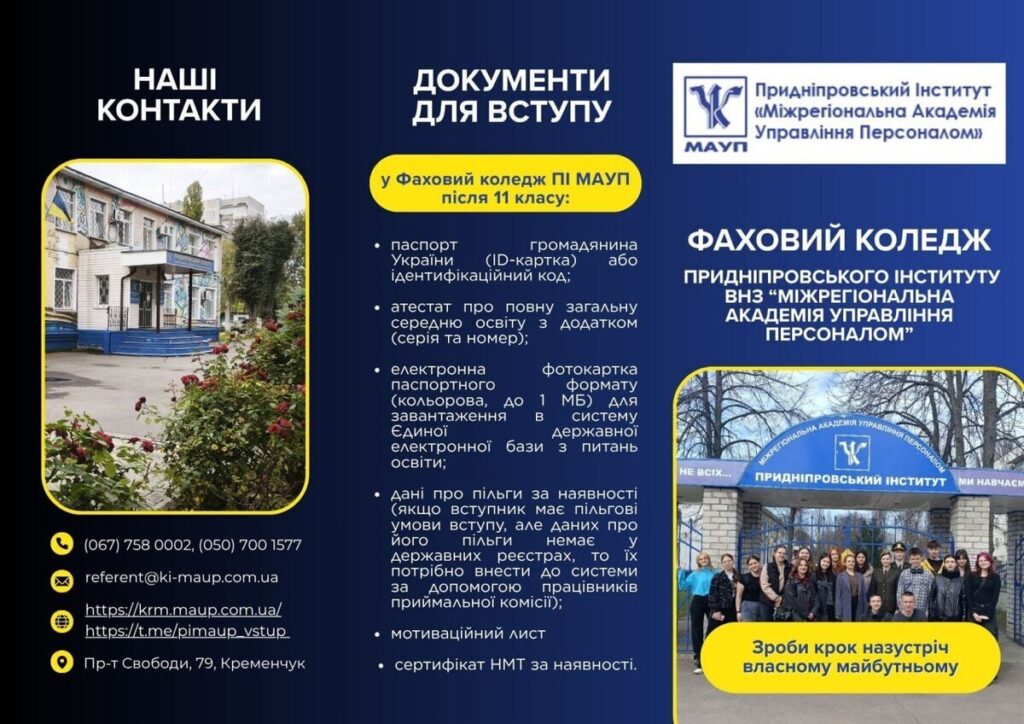 Твій успіх не залежить від тестів — він залежить від твого рішення! Вступай до Фахового коледжу ПІ МАУП у м.Кременчук вже у цьому році! Не втрачай рік!