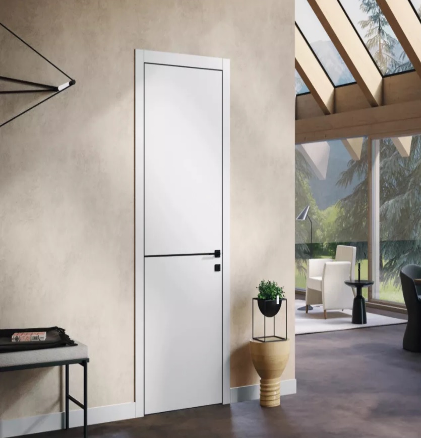 - Внутрішні двері — забезпечують зонування простору і впливають на дизайн кімнат. Найчастіше виробляються зі деревини, МДФ або скла. Важливий момент — звукоізоляція. Для спалень чи робочих кабінетів важливо обирати щільні двері з хорошими шумопоглинаючими властивостями.