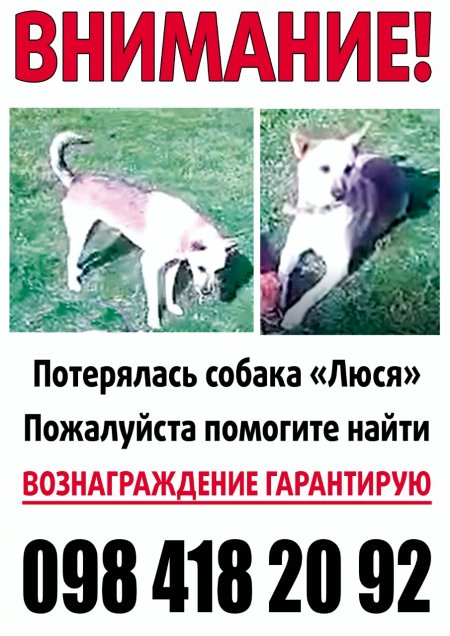 Ребята, помогите! В районе Электростанции потерялась собака Люся. Пожалуйста, помогите найти. За любую информацию будем благодарны.