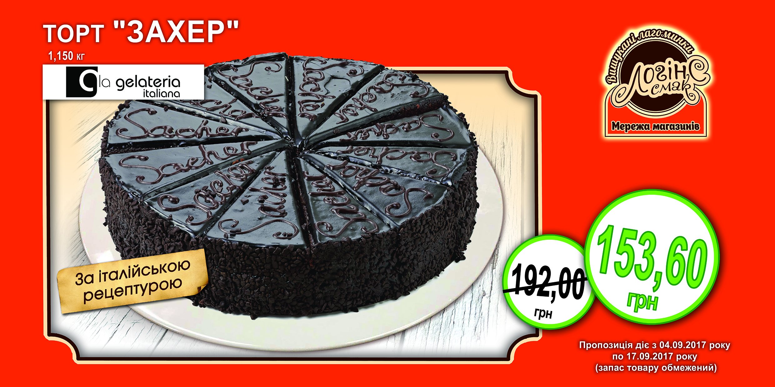 Мережа кондитерських магазинів «ЛогінСсмак» пропонує торт «ЗАХЕР» від ТМ «Ла Джелатерія» за спеціальною ціною!