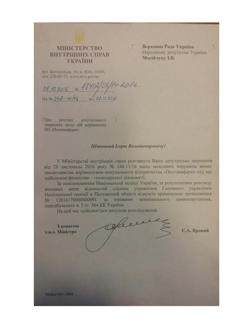 Відкрито кримінальне провадження за фактами порушень законодавства керівництвом КП "Полтавафарм"