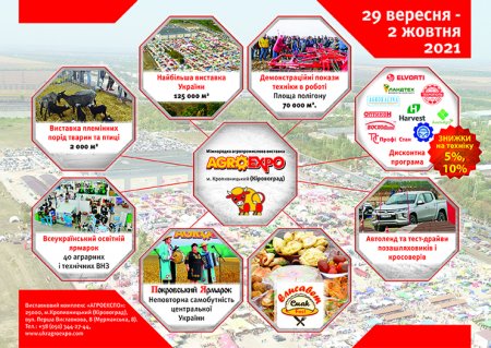 З 29 вересня по 2 жовтня в Кропивницькому - найбільша виставка України