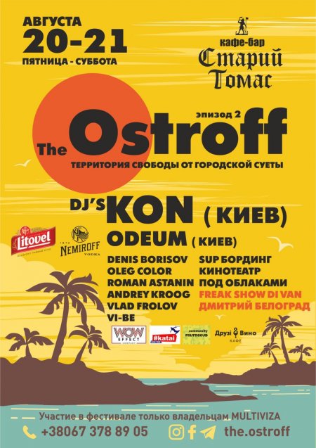 Хто молодий душею, того врятує з кременчуцької розмірності та передбачуваності музичний двуденний фестиваль «THE OSTROFF» @the.ostroff - територія свободи від міської метушні, який відбудеться 20,21 серпня.