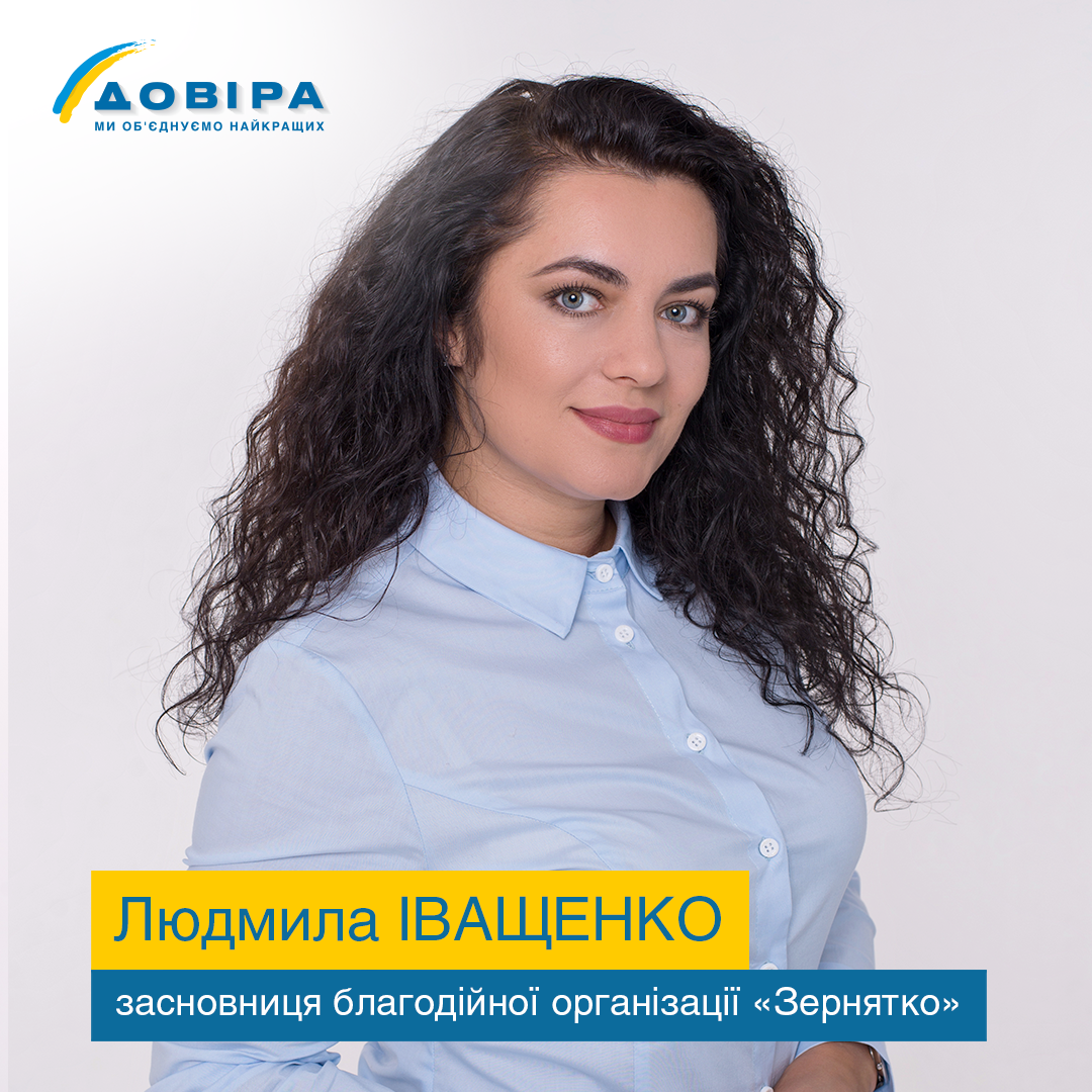 Успіх і розвиток Полтавщини залежить від здоров’я та освіченості наших дітей – переконана начальниця відділу управління персоналом ТОВ «ВОРСКЛА-МОДА», засновниця благодійної організації «Зернятко» Людмила Іващенко, яка приєдналася до команди політичної партії «ДОВІРИ».