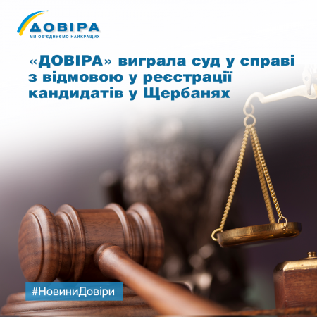 28 вересня суд скасував постанови Щербанівської СТВК про відмову в реєстрації кандидатів. Також зобов'язав Щербанівську комісію зареєструвати кандидатів від Полтавської обласної організації політичної партії «ДОВІРА» на місцевих виборах, що відбудуться 25 жовтня 2020 року.