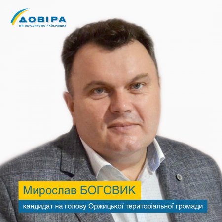 До команди партії «ДОВІРА» долучився заступник голови Оржицької районної державної адміністрації Мирослав Боговик, який балотується на голову Оржицької територіальної громади і вже завоював велику підтримку і повагу людей.