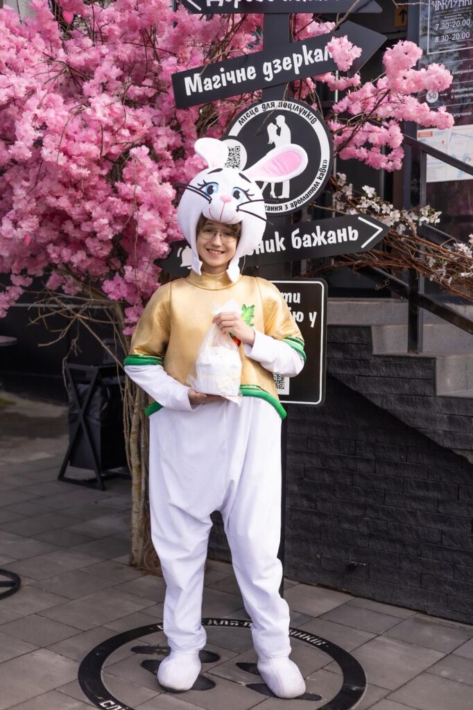Яскравий декор, пасхальний кролик і тепла, жива атмосфера створюють відчуття свята ще з перших кроків — сюди приходять сім’ями, за настроєм і за тими самими емоціями Великодня.