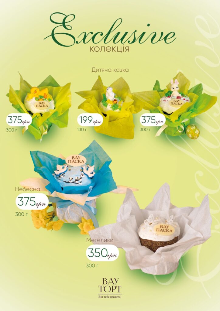 На ярмарку представлена продукція від добре відомого у Кременчуці місцевого виробника ексклюзивних тортів — ВАУ ТОРТ. Тут можна знайти як традиційні паски, так і ексклюзивні варіанти в подарунковому пакуванні, ніжні сирні паски та улюблені містянами панетоне з молочним та білим шоколадом. Вся випічка готується щодня — з любов’ю, турботою і бажанням подарувати людям не просто смак, а справжні вау-емоції.