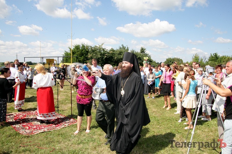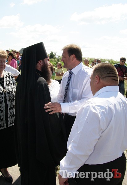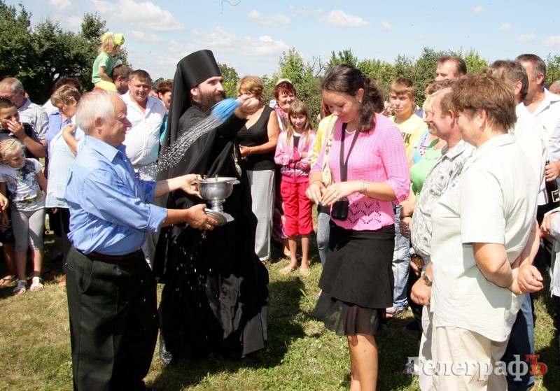 - Епископ Кременчугский и Лубенский Николай пожелал селянам мира, здоровья, Божьей помощи и окропил собравшихся святой водой.