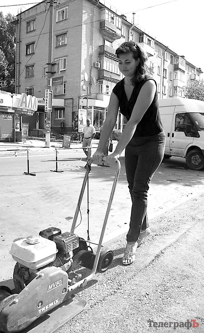 Все, понеслось, я как Дуся-агрегат, вместе с коммунальщиками орудую лопатой. Сперва ношусь как слепая лошадь, но «абы как» тут не проходит – по бордюру прорисована белая метка – нужно угадать так, чтобы асфальт занял весь отведенный под него объем. Повторять «простые движенья» очень тоскливо, надоедает минут через десять. Зато такой себе бесплатный фитнес: часик лопатой помахал – и не надо никакого спортзала, мускулатуре на руках любой качек позавидует. Прохожие смотрят как-то с сочувствствием, видно, что асфальтно-лопатная работа им не кажется ни легкой, ни престижной. Но больше всего достает запах асфальта – кажется, и одежда, и кожа, и волосы им уже пропитались, скорее бы в душ. Сбежать бы отсюда подальше, подышать чистым кременчугским воздухом – уж поверьте, после асфальта даже возле центрального рынка он покажется вам просто альпийским.