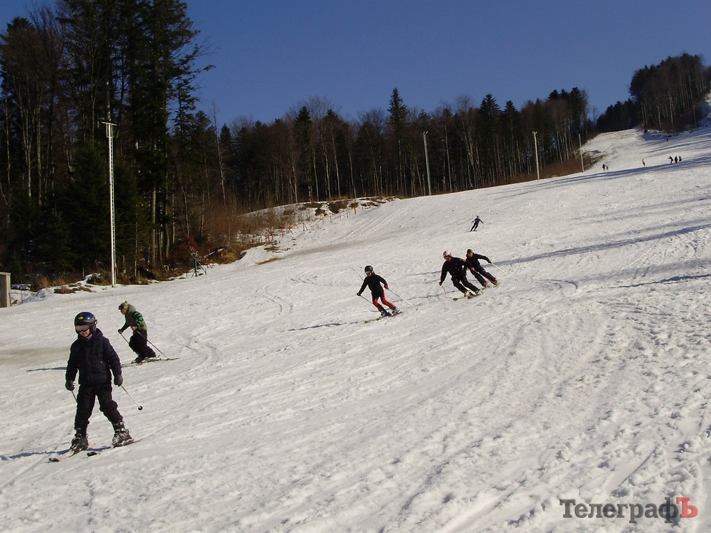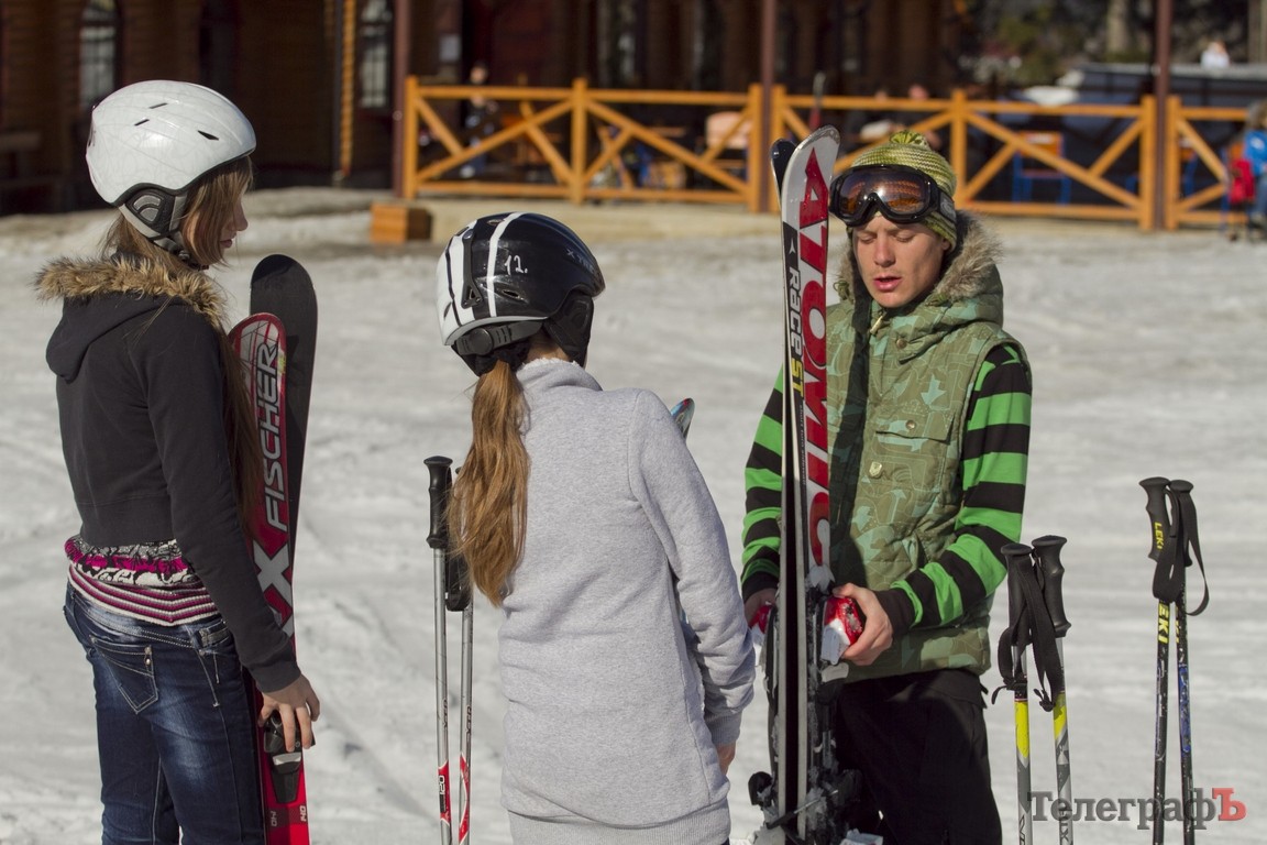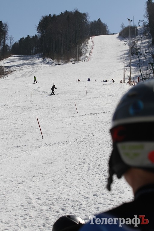 Первый спуск – первое падение. На втором на ногах удержалась, но несло так, что аж голова кружилась. Тренер объясняет: плужком, плужком, корпус - вперед. Какой там плужок! Летишь, как сумасшедший, ничего вокруг не видишь. И понимаешь значение выражений «корова на льду» и «что ты плугуешь» Тормозишь, значит. Но терпение и профессионализм инструкторов школы «Каштан» таки дало результаты. Я съехала сама! С 600-метровой высоты! И это – правда клево! С помощью чудесных мужчин-инструкторов я так научилась ездить, что рискнула принять участие во всеукраинских соревнованиях среди журналистов по гигантскому слалому (это вид горнолыжного спорта).