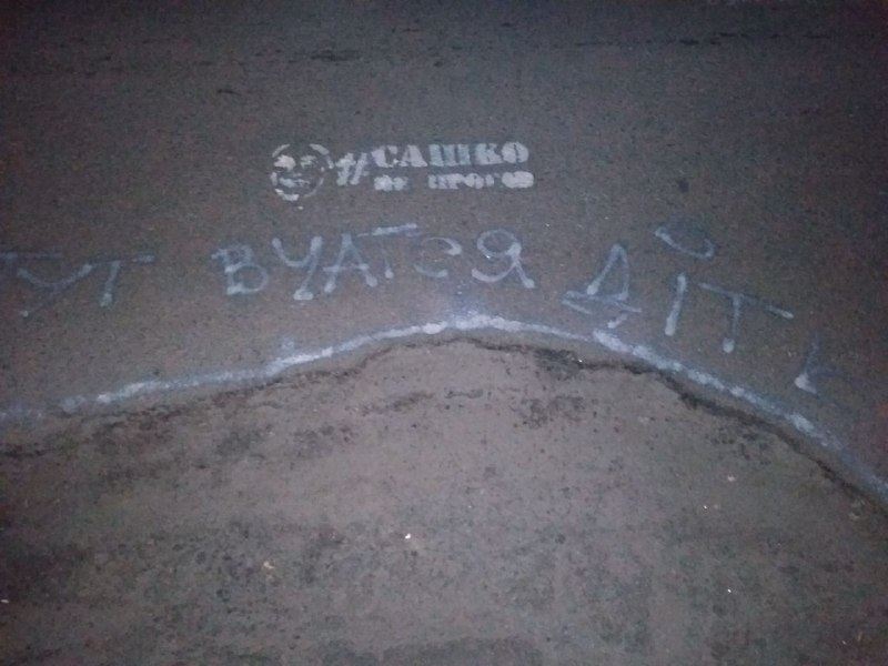 В Полтаве активисты занялись дорожным стрит-артом – стали пририсовывать к дорожным ямам лицо мэра.