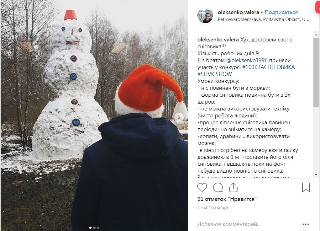 Відомо, що на створення сніговика витратили 9 днів. Валерію допомагав його брат.