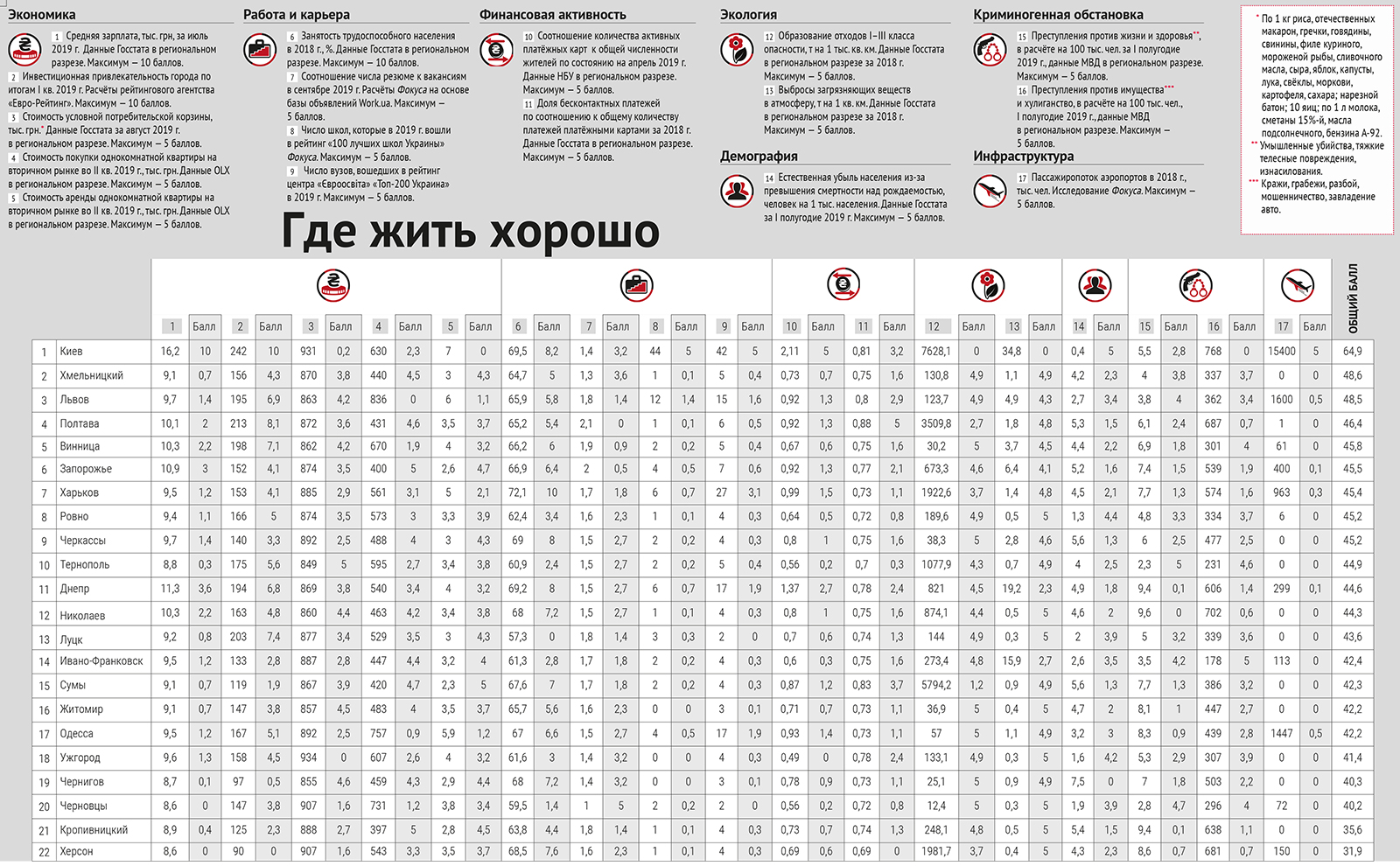 В этом году рейтинг состоит из двух частей. Первая — объективная оценка комфортности украинских городов по 17 параметрам, полученным из открытых данных. Вторая — субъективное описание достоинств и недостатков города его уроженцами. В некоторых случаях объективная и субъективная оценки отличаются.