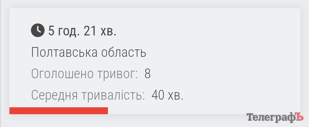 Лише з початку доби 12 березня в області уже 8 разів оголошувалася повітряна тривога. Загальна їх тривалість — 5 годин і 21 хвилина, а середня — 40 хвилин.