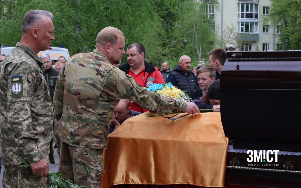 Провести в останню путь загиблого військового біля Свято-Успенського собору зібралися його рідні, друзі та побратими.
