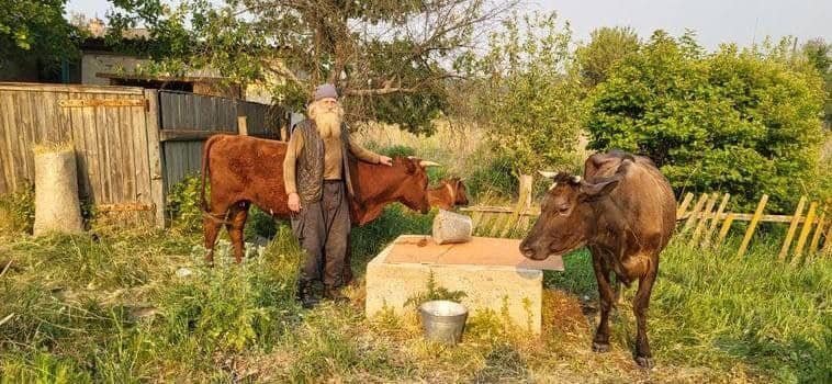 «Така історія евакуації у нас, певно, вперше. Просто зараз евакуюємо дідуся з трьома коровами та собаками. Він не міг залишити своїх тварин і йшов разом із ними пішки з Торецька в Донецькій області аж на Полтавщину», — йдеться в дописі.